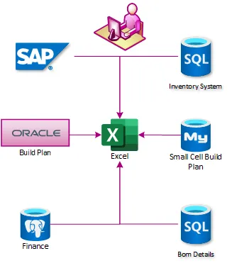 Data at T-Mobile, like many enterprises, is spread between disparate systems that are not integrated. Integrating the status of network plans, material procurement, supply chain operations, and field services was incredibly complex. In early 2018 the enterprise relied on weekly reporting in Excel and PowerPoint. These reports were built on dedicated SQL Servers, each of which obtained data from different systems. The reports were then pulled into the enterprise data warehouse, where they were combined, but this process regularly took 12 hours or more to complete.