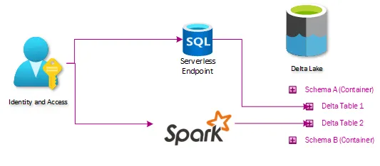 The security in the initial iteration revolved around SQL Server schemas. A schema functions as the intersection of the business domain and permission requirements, and then Active Directory groups were created and associated with each schema. This is easy for everyone to conceptualize and easy to administer and audit. This means that extending our security model meant just putting data into similarly named containers in our storage account. Granting the same Active Directory groups access to those containers lines up the permissions between Serverless SQL, Spark, SQL, and Data Lake.