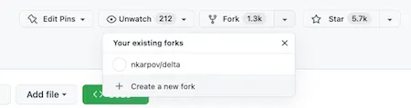 Let’s begin first by forking the Delta Lake Spark Connector repository. Go to https://github.com/delta-io/delta and click + Create a new fork. Forking a repository creates a copy of it in our own Github account, which enables us to safely follow our git workflow on our own isolated copy.