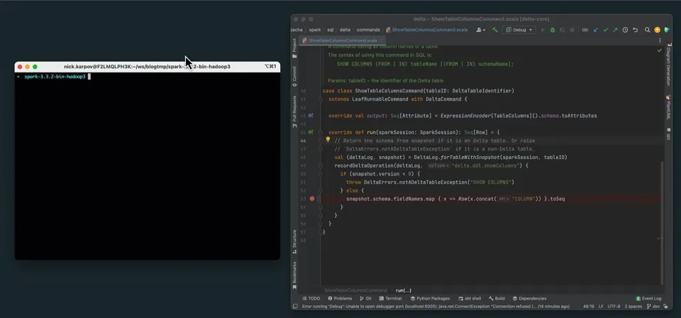 In this post we stepped through the full development loop with the Delta Lake Spark connector. We learned how to set up the project locally, build and package the code, configure the IntelliJ debugger, and run our custom Delta Lake Spark connector in debug mode.