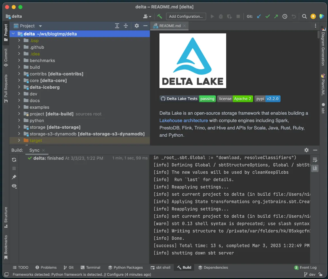 If you’re using a Mac, you can execute all the commands in this post in your terminal. You may need to make changes for other operating systems. If you run into any issues, please join our Slack channel #deltalake-questions or #contributing.